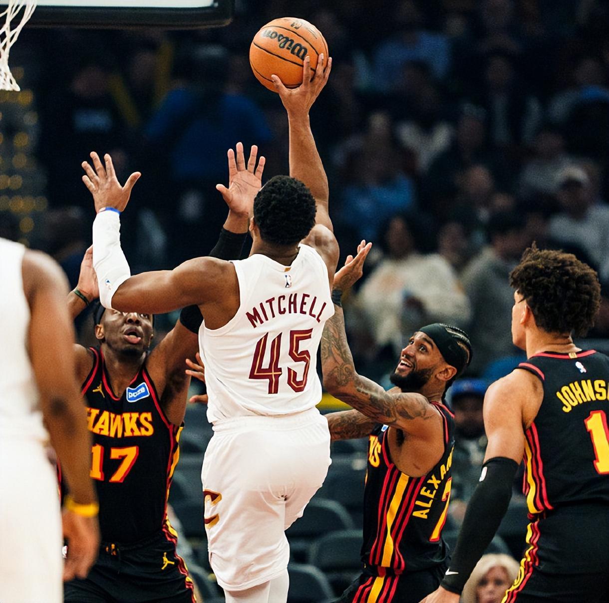 北京时间4月9日,NBA常规赛继续进行,亚特兰大老鹰队前往客场挑战克利夫兰骑士队。骑士队正处于一波3连胜中,稳居东部第4位;老鹰队的4连胜刚被尼克斯队终结,他们依然排在东部第5位。骑士队和老鹰队是季后赛首轮潜在对手,这场比赛不仅仅关乎东部排名和对阵,也会对季后赛排兵布阵提供实战参考价值。两队精锐尽出,骑士首发五虎为哈登+米切尔+阿伦+小莫布里+韦德,老鹰队首发五虎为杰伦约翰逊+沃克+奥孔武+丹尼尔斯+麦科勒姆。